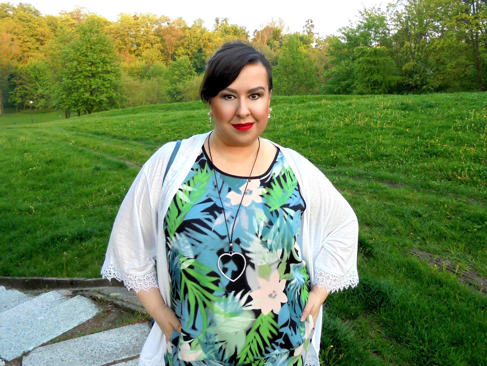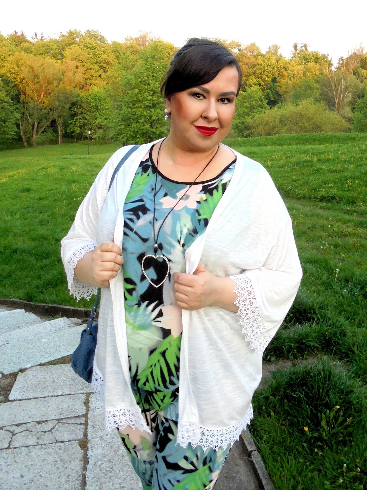 Jeśli chodzi o dodatki, to postawiłam na małą, niebieską torebkę (Mango) na długim pasku oraz czarne sandałki na platformie (Bonprix).