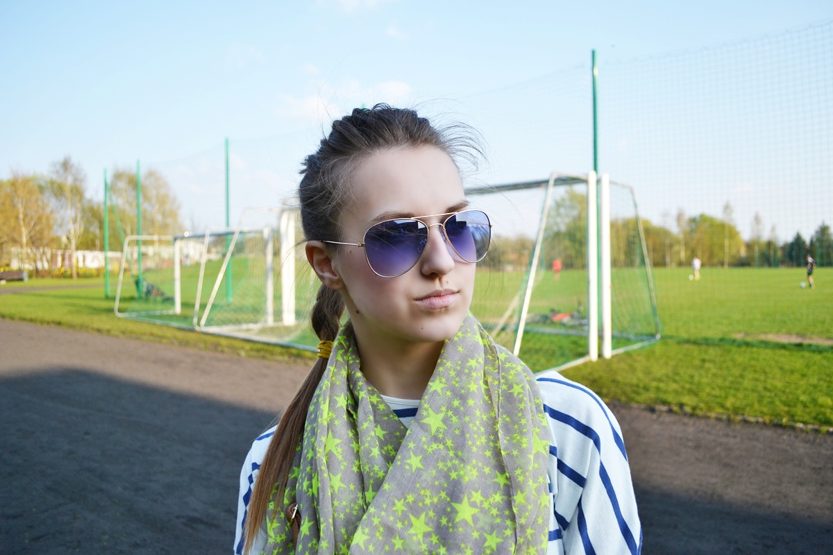 Zobacz oryginał wt., 22/04/2014 - 18:38 Dzisiaj mam dla Was kolejną stylizację. Tym razem postawiłam na pełną wygodę. Do moich ulubionych obcisłych jeansów dobrałam bluzkę typu oversize z rękawami 3/4. Dodatkami są brązowa kopertówka na pasku, neonowe trampki oraz komin w neonowe gwiazdki. Całość jest niezwykle wygodna, przez co świetnie sprawdzi się podczas biegania po mieście i załatwiania miliona spraw!