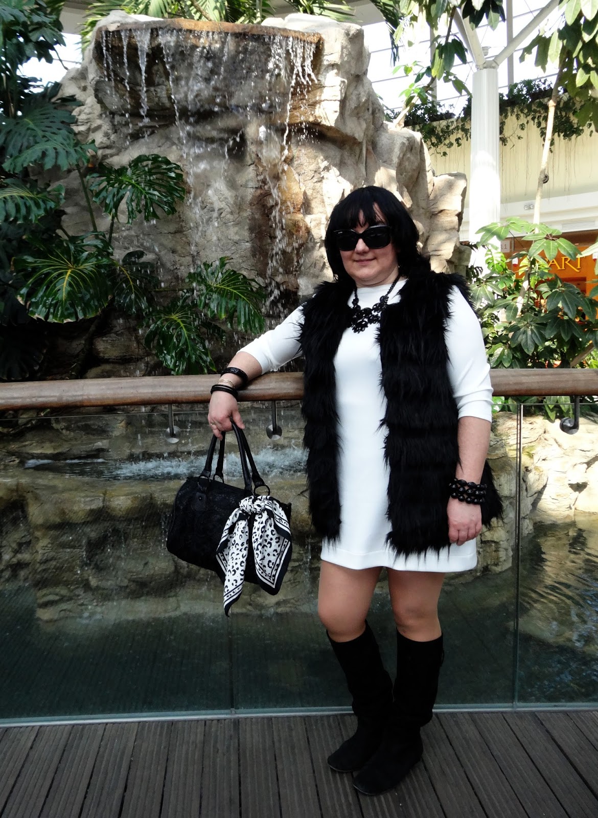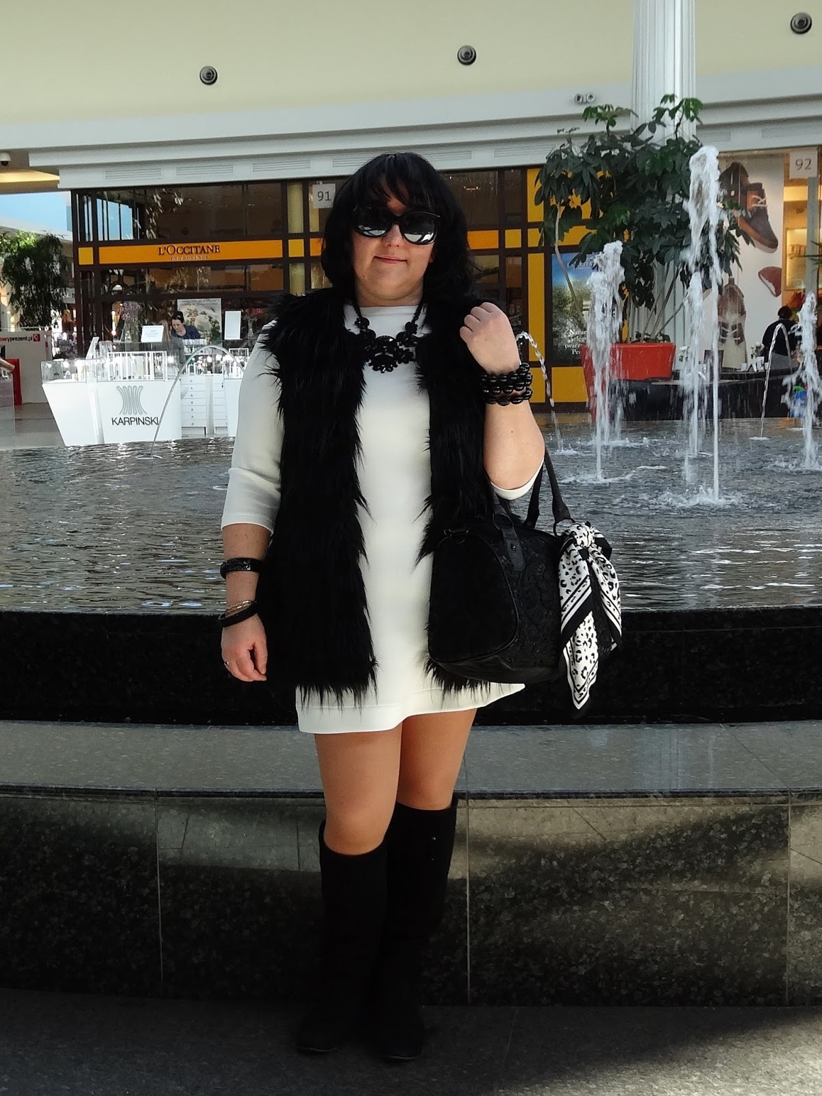 Wybrałam jedne z moich ulubionych ubrań, które już dobrze znacie; białą sukienkę z Preski, futrzaną kamizelkę z F&F i naszyjnik z Zary. Dopiero przy obrabianiu fotek pomyślałam, że powinnam dodać czerwoną torebkę, byłoby ciekawiej. Niestety mam do Silesii jakieś 30 km i nie pojadę po raz kolejny.