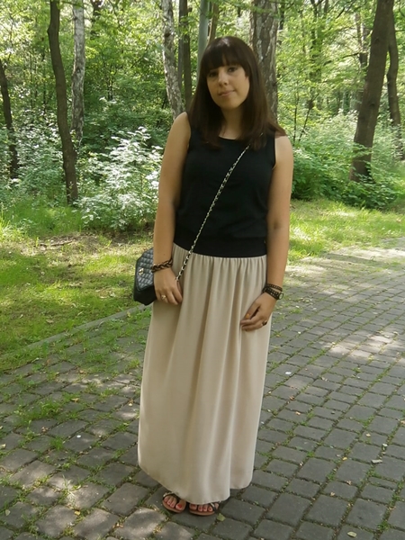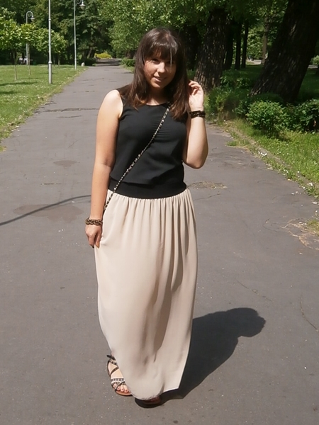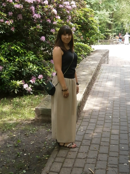 Zobacz oryginał pt., 21/06/2013 - 10:48 Mój niedzielny zestaw na spacer :) Strasznie długo czekałam by założyć tę spódnicę :) W końcu pogoda zrobiła się taka, że mogłam wyjąć z szafy wszystkie letnie rzeczy :) Tyyyle tego! Aż nie wiadomo kiedy nosić :) Spódnica na zdjęciu w internecie miała ciemniejszy kolor i trochę mnie zawiodła na żywo, ale ostatnio podoba mi się koncepcja - jasny dół + ciemna góra :) Na noszenie jasnych spodni muszę jeszcze poczekać (tak z 8 kilo xD) ale luźna długa spódnica świetnie się sprawdza :)