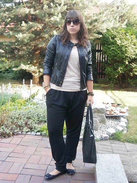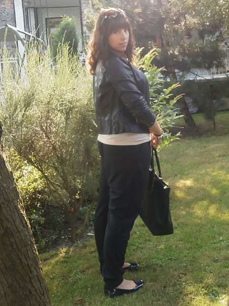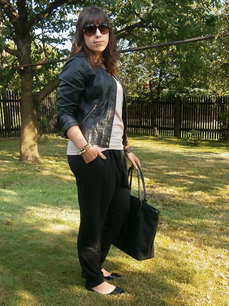 Spodnie kupiłam w supermarkecie za niecałe 30zł. Fajnie się w nich czuję bo są wygodną odskocznią od opiętych dżinsowych rurek i wisi mi czy wyglądam w nich grubo :D Choć z drugiej strony martwi mnie, że w końcu dobiłam do 10 kilogramów, a ja nadal tego po sobie nie widzę. Zastanawiam się jak ja się w ogóle umiałam poruszać nosząc te dodatkowe 10 kilo :P