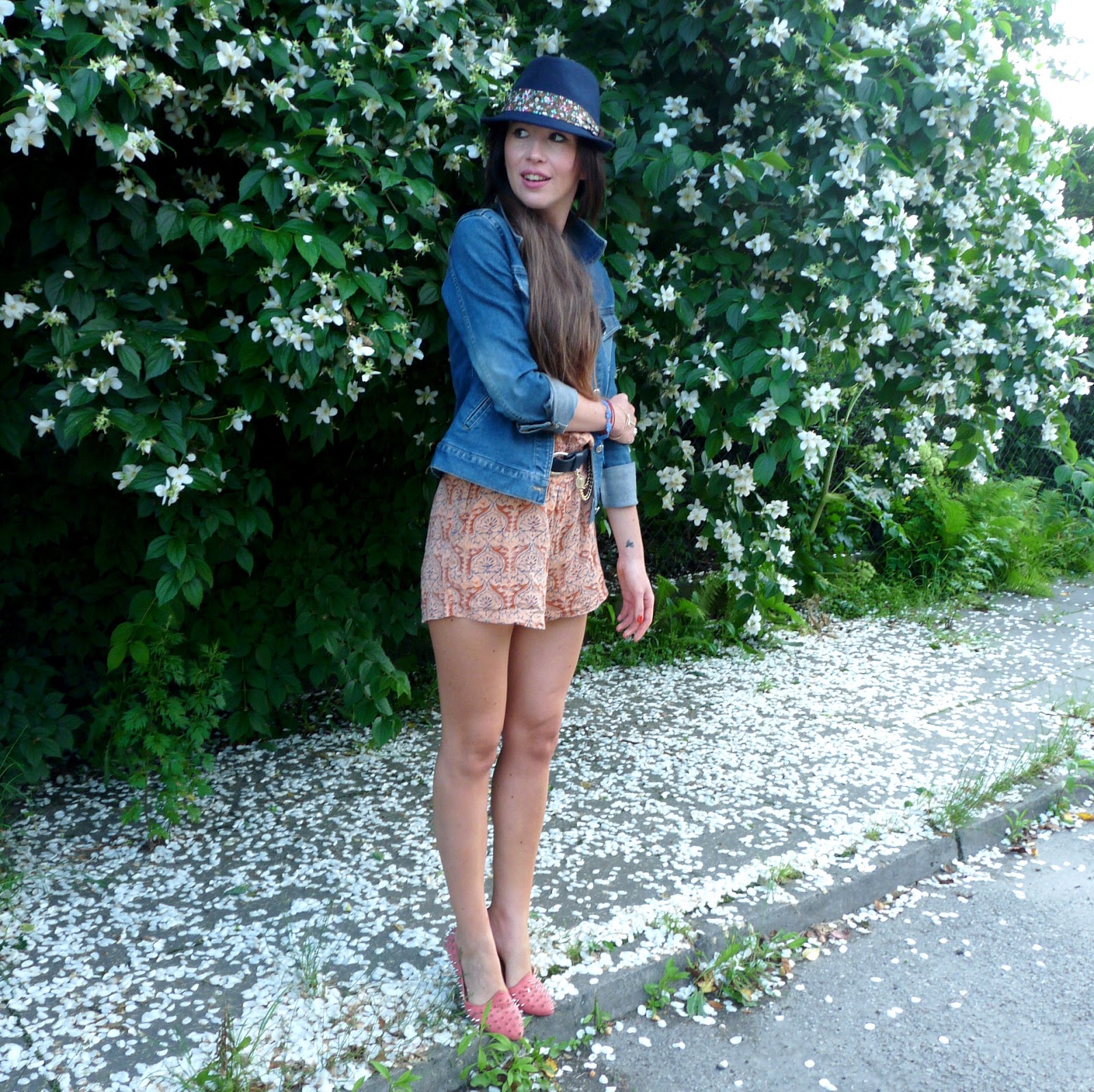 Na drugim planie kombinezon. Bardzo go lubię. Upału nie było więc postanowiłam zestawić go z jeansową kurtką.