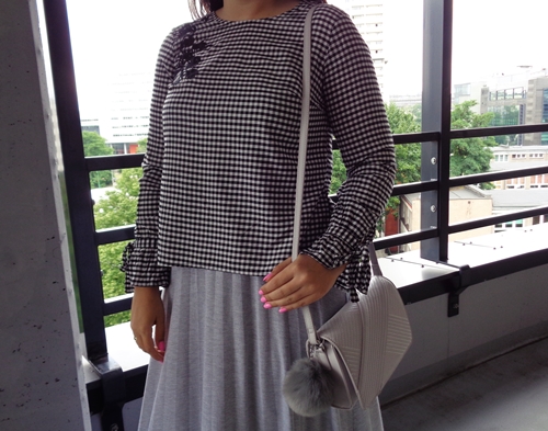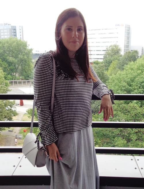 Zobacz oryginał pon., 10/07/2017 - 19:56Pierwsza maxi w tym sezonie. Jakoś straciłam serce do tej spódnicy. Dopiero na zdjęciach widzę, że wyglądam jakbym nie zrzuciła tych 15 kilogramów od zeszłego lata. Co prawda wiedziałam, że przez tę bluzkę "stracę" talię, ale nie sądziłam, że efekt będzie aż tak widoczny. Niemniej jednak podoba mi się połączenie czarnej kratki z szarością.