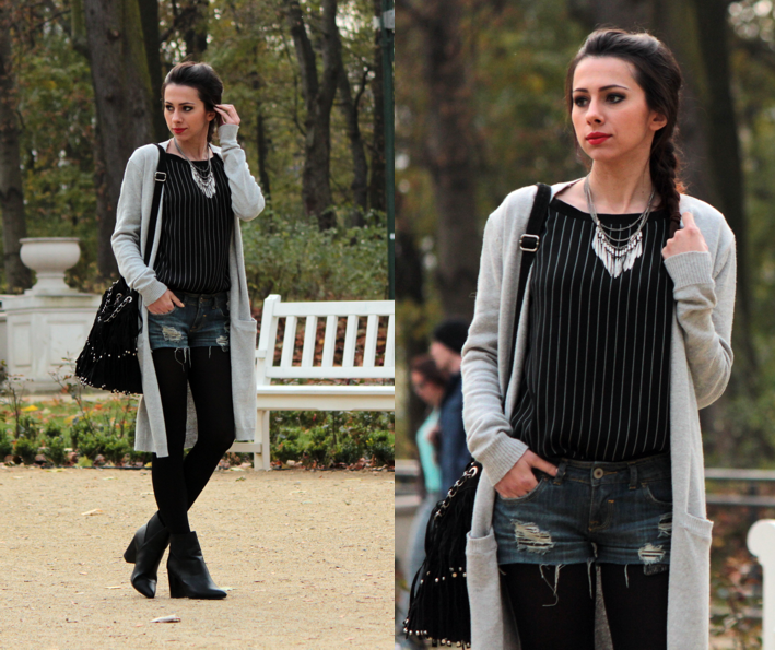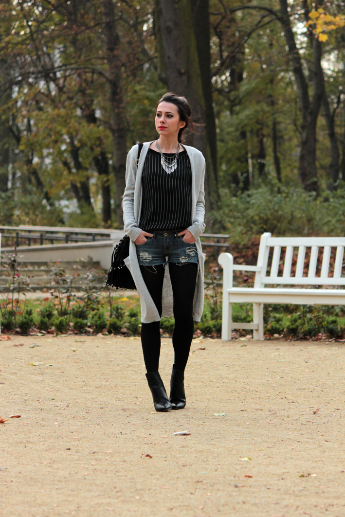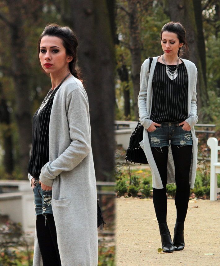 T-SHIRT: TOP SECRET | CARDIGAN: NEW YORKER | SHORTS: BERSHKA | BOOTS: CZASNABUTY.PL | NECKLACE: H&M | BAG: NO NAME (ALLEGRO)