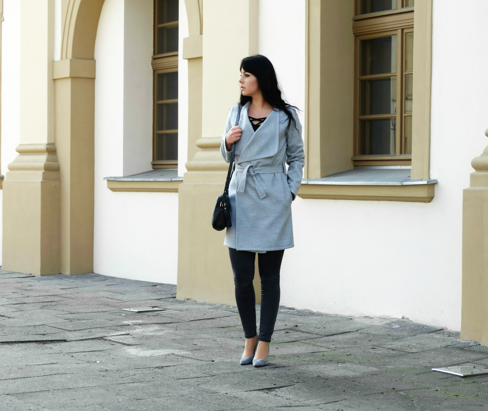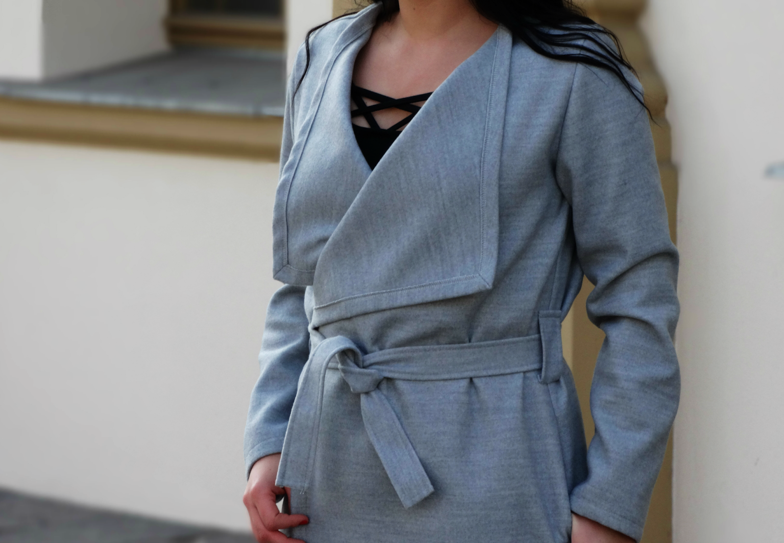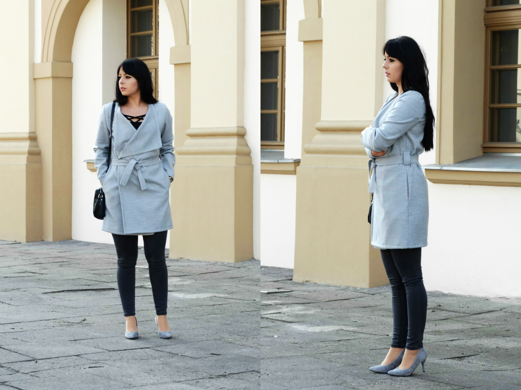 Szarość w mojej szafie zagościła na dobre, zmienia się tylko jej forma. Przyznaję, że uwielbiam ten kolor za to, że jest taki neutralny, skromny i naprawdę potrafi dostosować się do wielu kolorów. (do pozostałej prawie całej palety barw). Zestaw jest dość prosty, jeżeli chodzi o formę i kolorystykę. Taki minimalizm lubię najbardziej! Jedyną rzeczy z tego zestawu, do której przekonywałam się dość długo, jest wiązany w pasie płaszcz. Jeszcze kilka miesięcy temu, myślałam sobie, że nigdy nie wyszłabym w szlafroku na ulicę :) bo z tym kojarzy mi się ten płaszcz. Ale nie żałuję zmiany swojego nastawienia do tego trendu. Bo jest to naprawdę dobry krój płaszcza, który potrafi podkreślić talię oraz ukryć mankamenty figury.