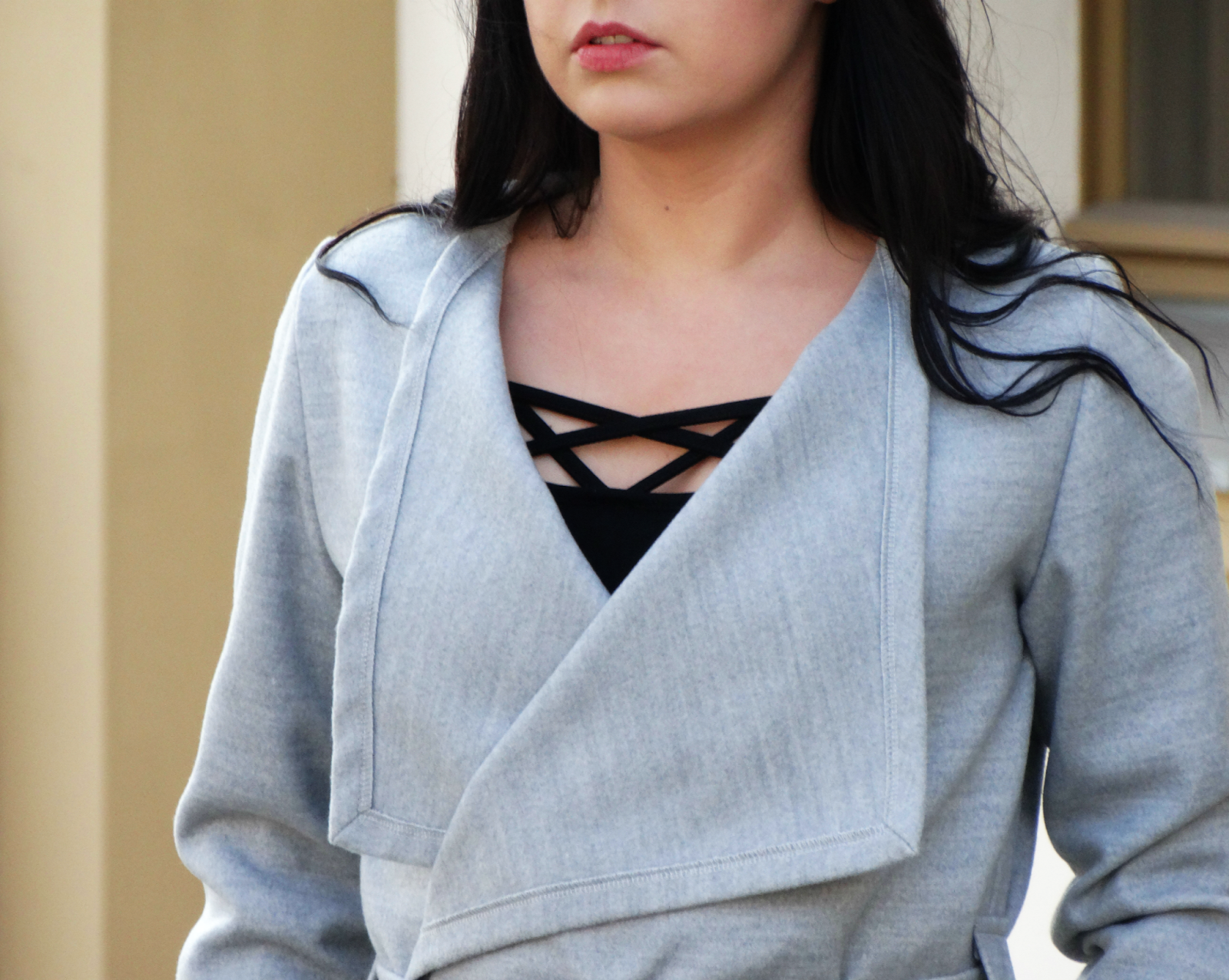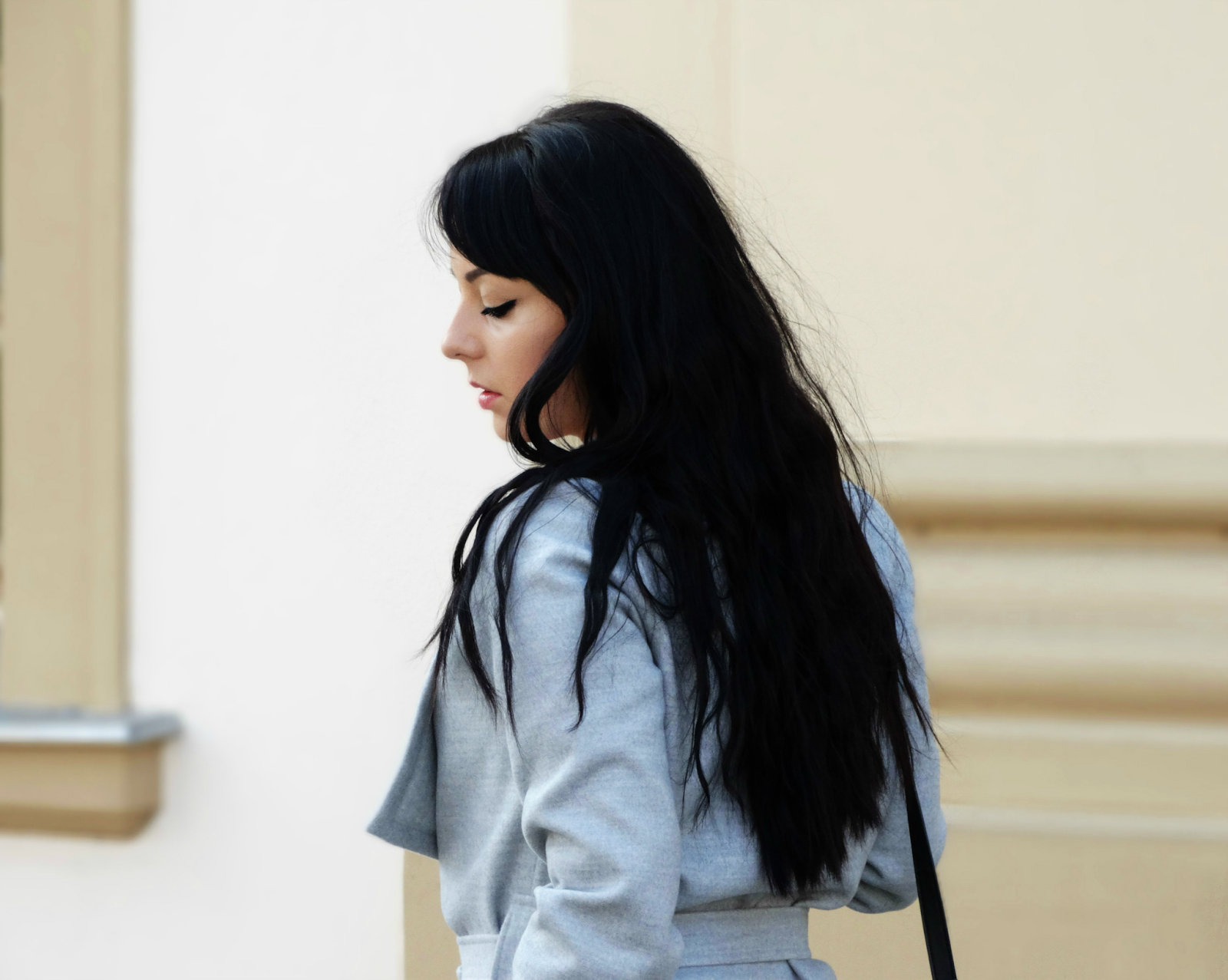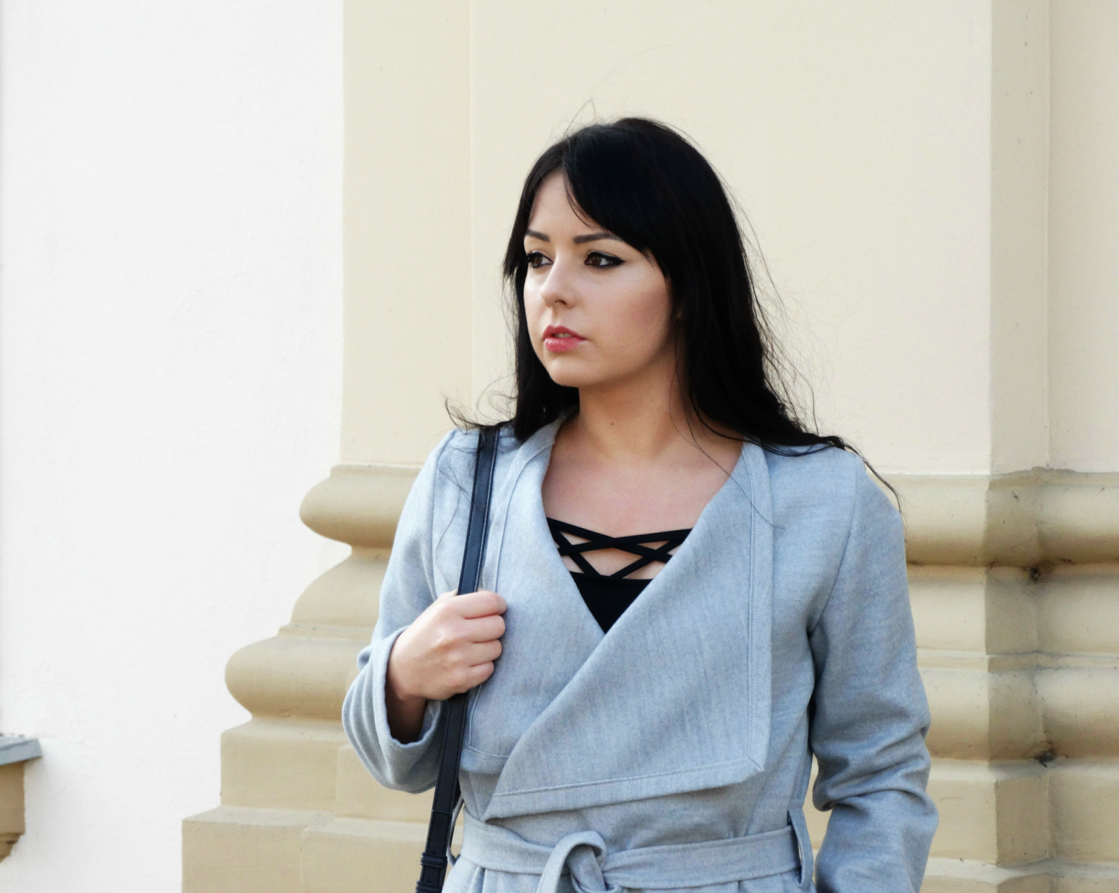 Szarość w mojej szafie zagościła na dobre, zmienia się tylko jej forma. Przyznaję, że uwielbiam ten kolor za to, że jest taki neutralny, skromny i naprawdę potrafi dostosować się do wielu kolorów. (do pozostałej prawie całej palety barw). Zestaw jest dość prosty, jeżeli chodzi o formę i kolorystykę. Taki minimalizm lubię najbardziej! Jedyną rzeczy z tego zestawu, do której przekonywałam się dość długo, jest wiązany w pasie płaszcz. Jeszcze kilka miesięcy temu, myślałam sobie, że nigdy nie wyszłabym w szlafroku na ulicę :) bo z tym kojarzy mi się ten płaszcz. Ale nie żałuję zmiany swojego nastawienia do tego trendu. Bo jest to naprawdę dobry krój płaszcza, który potrafi podkreślić talię oraz ukryć mankamenty figury.