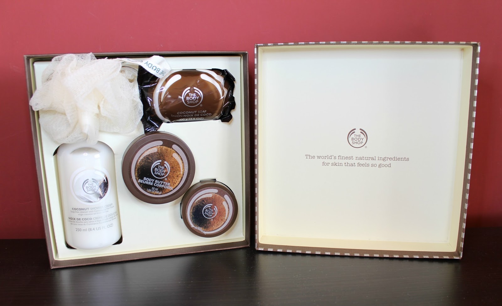 Kolorystyka zestawu utrzymana jest w odcieniach brązu i beżu, zdecydowanie kojarzy się z orzechem kokosowym, który po przełamaniu jest jasny w środku. Dla mnie połączenie idealne. Kosmetyki z zestawu przeznaczone są do skóry normalnej i suchej.