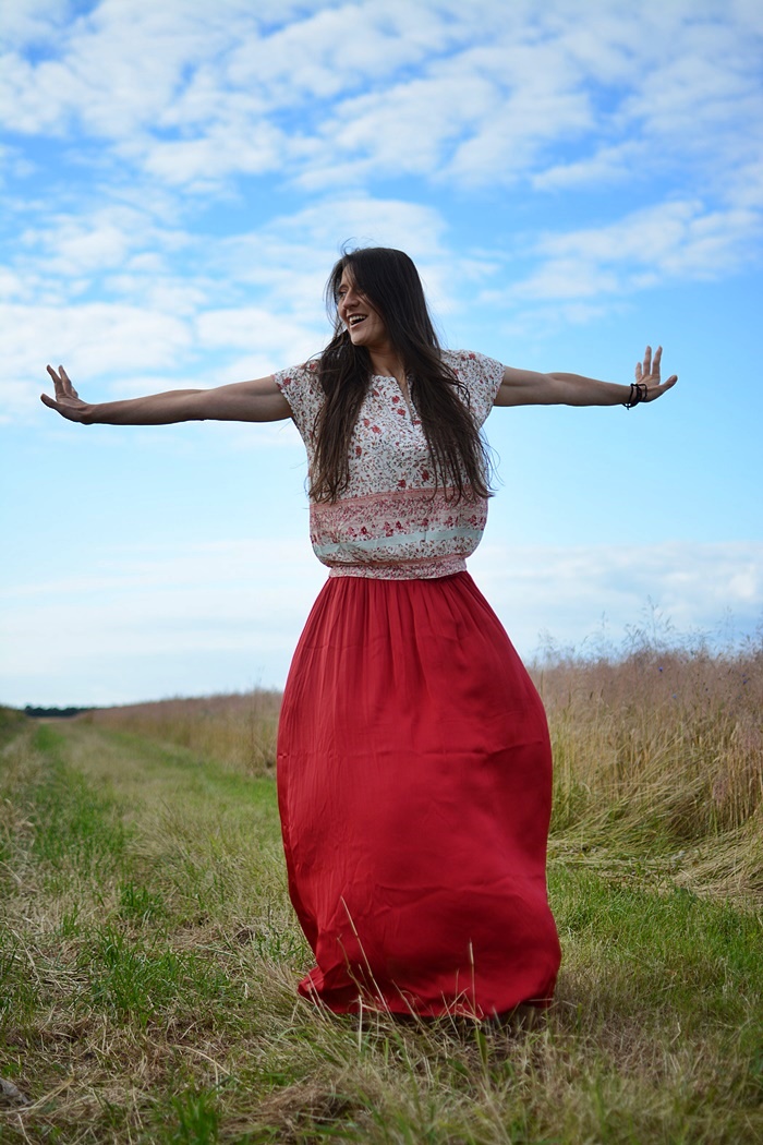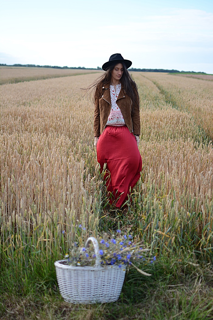 Nie jestem już bohasem. Mimo nazwy bloga. To też taka przestroga, żeby tę nazwę na początku dobrze przemyśleć, podobnie jak np. motyw jaki chcemy wytatuować, "(...)bo inaczej Indianin", jak to mówi Doda ;). Wszystkie drogi prowadzą do Indiana. No to macie Indiankę na pożegnanie z boho. Tańcząca w wiatrem. O ile zazwyczaj narzekam na pogodę, że to słońce za ostre, że to mrok, mżawka i ostrość nie ta, tak z warunków na tej sesji byłam bardzo zadowolona. Niebo przybierało różne odcienie niebieskiego - od pastelowego błękitu po granat, wiatr sprawił, że owa spódnica zaczęła z nim tańczyć, prezentując naszym oczom swoisty spektakl, a na końcu wyszło słońce.