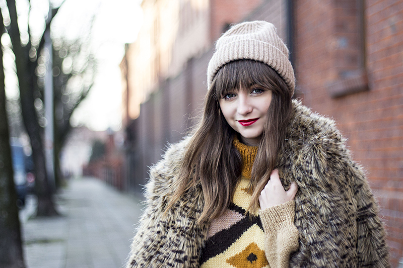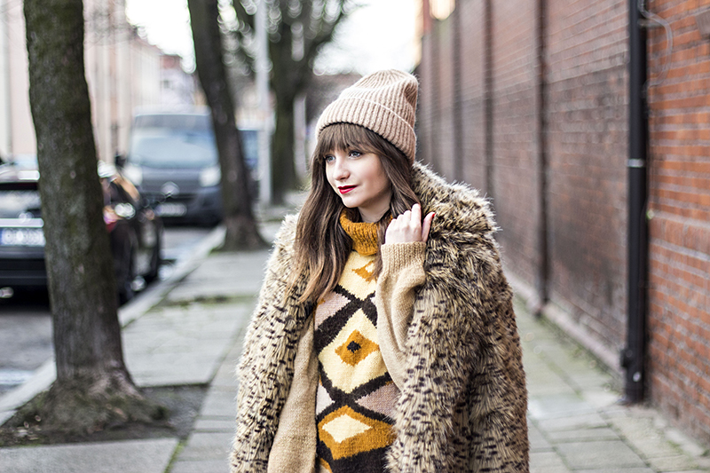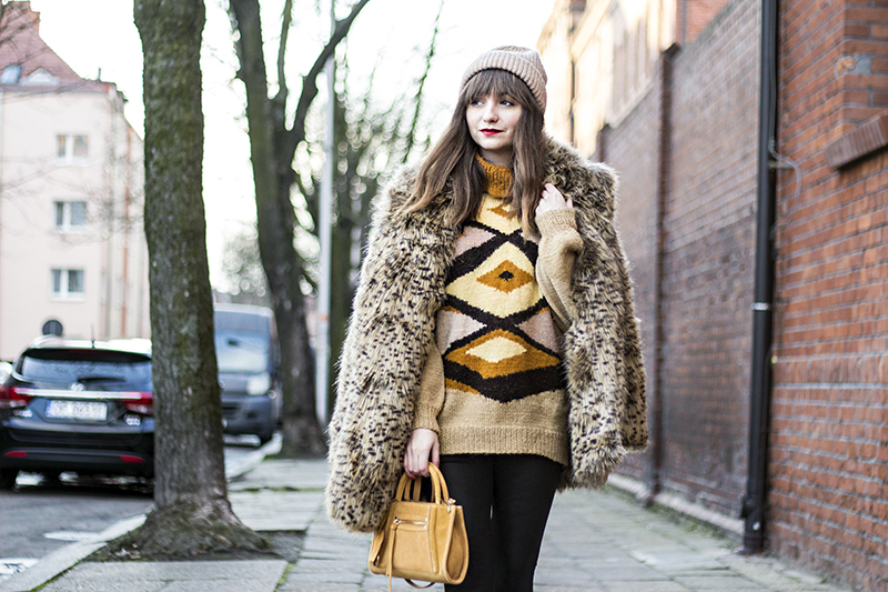 Tutaj całość połączyłam futerkiem we wzór drobnej panterki i swetrem vintage. Jak Wam się podoba takie zestawienie? Dajcie znać! :)