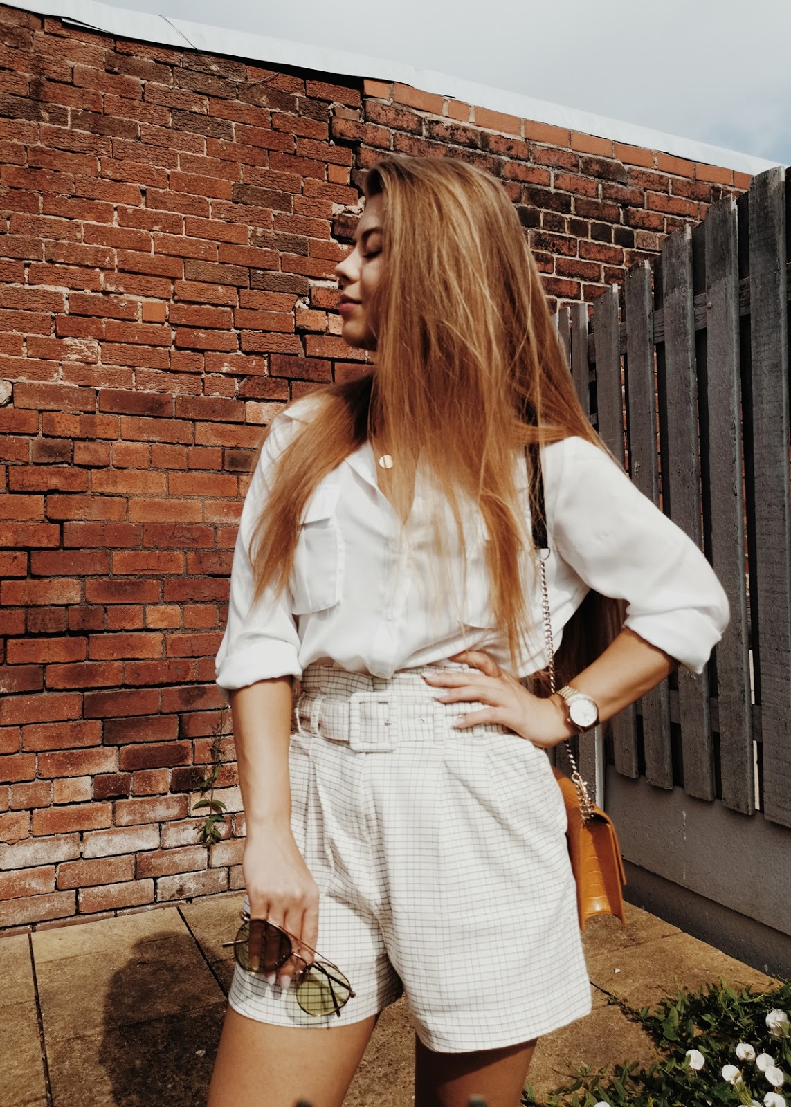 Hej Kochani. Dziś przygotowałam dla Was stylizację gdzie większość rzeczy, które mam na sobie pochodzi ze sklepu NA-KD. Uwielbiam ten sklep. Jakość ubrań jest naprawdę świetna. Są warte swojej ceny. Dziś chciałabym Wam pokazać nowość, czyli szorty w kratę w stylu retro. Resztę mogliście już zobaczyć na Instagramie lub tutaj na blogu. Co tu dużo mówić szorty idealnie podkreślają talię i świetnie leżą. Najlepiej wyglądają w połączeniu z koszulą bądź prostym T-Shirtem.