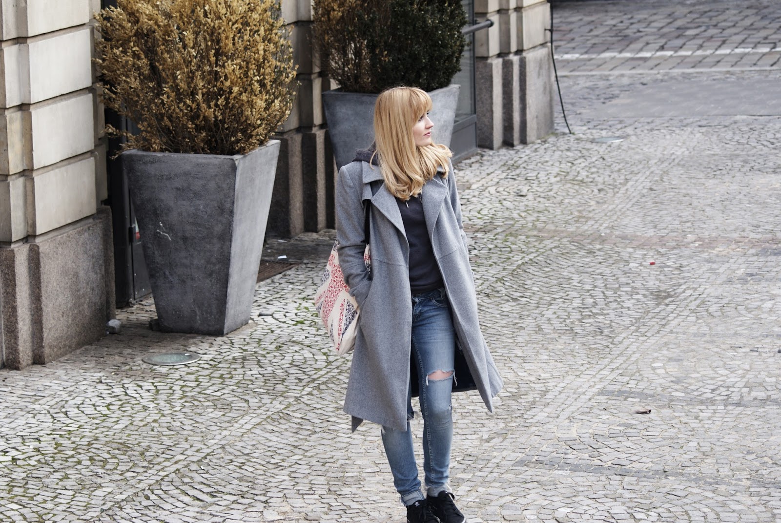Jeśli macie jakieś bluzy, które nosicie po domu... lepiej je przeprosić i wystawić na światło dzienne :D. Jak je łączyć? Oczywiście teraz można wszystko dowolnie łączyć, wedle swojego uznania. W zasadzie każde połączenie będzie wyglądać stylowo. Ja osobiście preferuję połączyć taką bluzę z obcisłymi spodniami z dziurami, dorzucić do tego coś bardzo luźnego - sportowego (w moim przypadku lniana torba) i coś mocno eleganckiego (u mnie płaszcz). Wiem, że źle bym się czuła cała ubrana na sportowo, dlatego muszę zawsze dodać choć jedną rzecz elegancką. Takie kontrasty według mnie wyglądają dużo ciekawiej :).