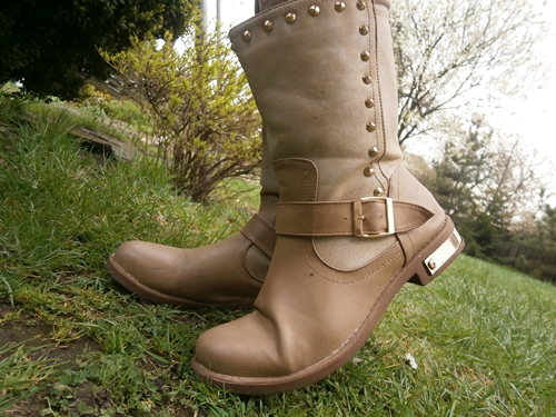 Co do zestawu to staram się usilnie przekonać do jasnych kolorów. Kupiłam te przepiękne botki na vinted.pl i okazało się, że choć mają świetną wysoką i szeroką cholewkę, do której wchodzi nogawka to przy ciemnych spodniach skracają nogi. To samo w przypadku beżowych spodni połączonych z czarnymi botkami. A ja nie jestem za wysoka, nie mam czym szarżować. Trzeba się optycznie wydłużyć przy takich biodrach, ale nie będę wam wmawiać, że codziennie biegam na szpilkach. Tego typu płaskie botki to moje ulubione obuwie :) Poszłam więc na kompromis i myślę, że wszystko się fajnie zgrało. Choć i tak wolę czarne dżinsy, mówcie co chcecie :)