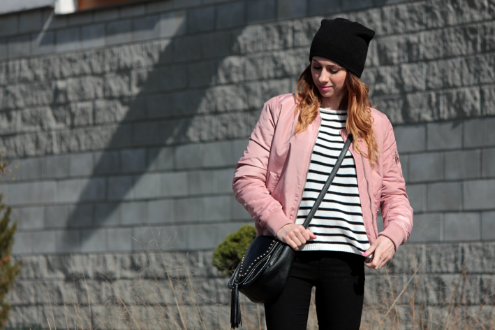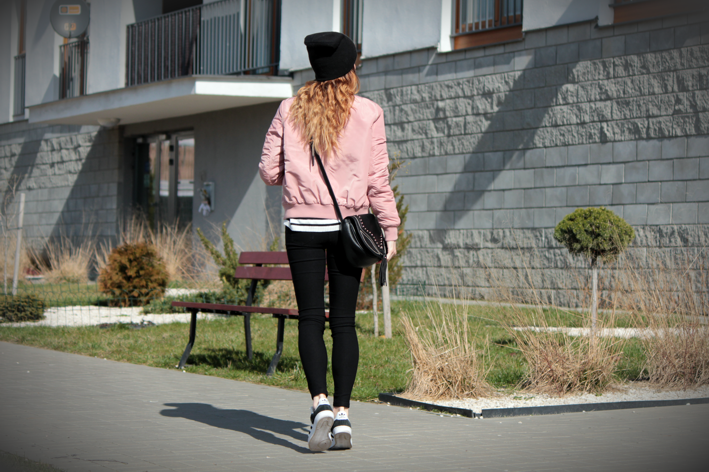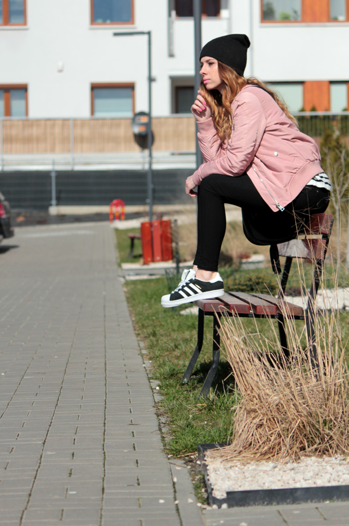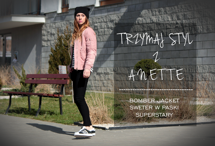 TRZYMAJ STYL Z ANETTE: ZESTAW Z RÓŻOWYM BOMBER JACKET 1 - SWETER W PASKI I SUPERSTARY