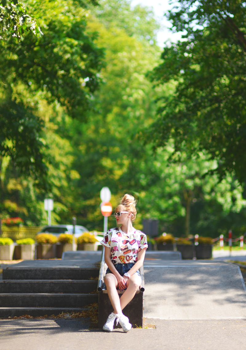 Zobacz oryginał śr., 22/07/2015 - 14:47Od dłuższego już czasu staram się prowadzić zdrowy tryb życia. Nie mam tu na myśli rygorystycznych diet polegających na jedzeniu liści sałaty i liczeniu każdej kalorii, a racjonalne odżywianie się i ograniczanie niezdrowych produktów. Nie daję się zwariować i nie eliminuję z codziennego jadłospisu wszystkiego czego powinno się unikać chcąc zdrowo żyć, bo twierdzę, że życie jest za krótkie aby całkowicie rezygnować z takich przyjemności jak słodycze czy tłusty hamburger. Nic z tych rzeczy nam nie zaszkodzi, jeśli będziemy to spożywać z głową i nie codziennie. A taka chwila rozkoszy po długim czasie zdrowego jedzenia jest czymś niesamowitym, uwierzcie mi. Sama serwuje sobie czasem cheat meal lub nawet i day po długim tygodniu treningów i zdrowych dań, bo po prostu nie potrafię całkowicie z nich zrezygnować. Mogę powiedzieć, że jestem uzależniona od słodyczy, które wprost uwielbiam i nie łatwo mi przyszło zrezygnować z nich tak z dnia na dzień. Największym moim wrogiem jest brak silnej woli, który na początku często ze mną wygrywał, ale odkąd nad tym pracuję, coraz lepiej sobie z tym radzę. Już dawno zdałam sobie sprawę jak bardzo szkodzą mi słodkości i fastfoody ociekające tłuszczem i nie mam problemu aby zrezygnować z ich jedzenia. Sama jednak czasem świadomie po nie sięgam bo po prostu je lubię. Nie znaczy to jednak, że to co jem na co dzień - czyli zdrowo - nie jest pyszne! Jestem bardzo wybredna i wiele zdrowych dań nie przypada mi do gustu, więc musiałam znaleźć inne zdrowe rozwiązania, które jednocześnie są naprawdę smaczne! To takie nawiązane do koszulki, którą miałam na sobie tego dnia. Przypomina mi ona o tym, że fastfoody i słodycze choć są pyszne i pięknie wyglądają, niekoniecznie dobrze wpływają na nasze zdrowie :).