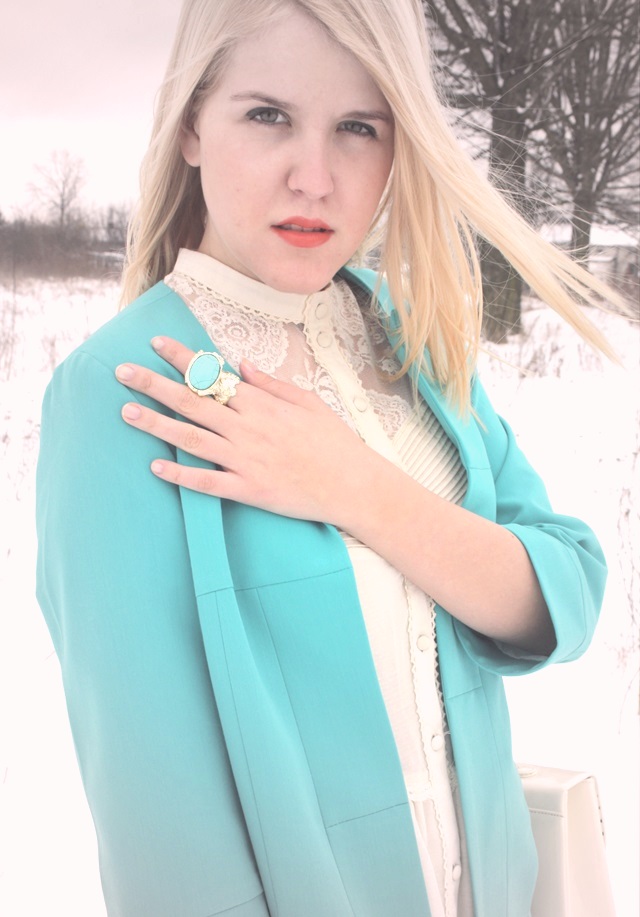 Podobno turkus ma królować latem, to wymarzony kolor na słoneczne dni. Ja postanowiłam zbuntować się zimie i już dziś zrobiłam iście letnią stylizację. Turkus idealnie sprawdzi się z brązem, bladym różem, białym i kremowym.
