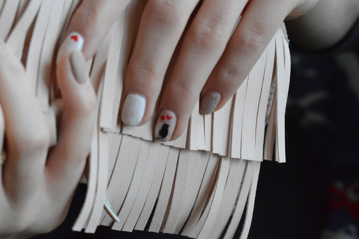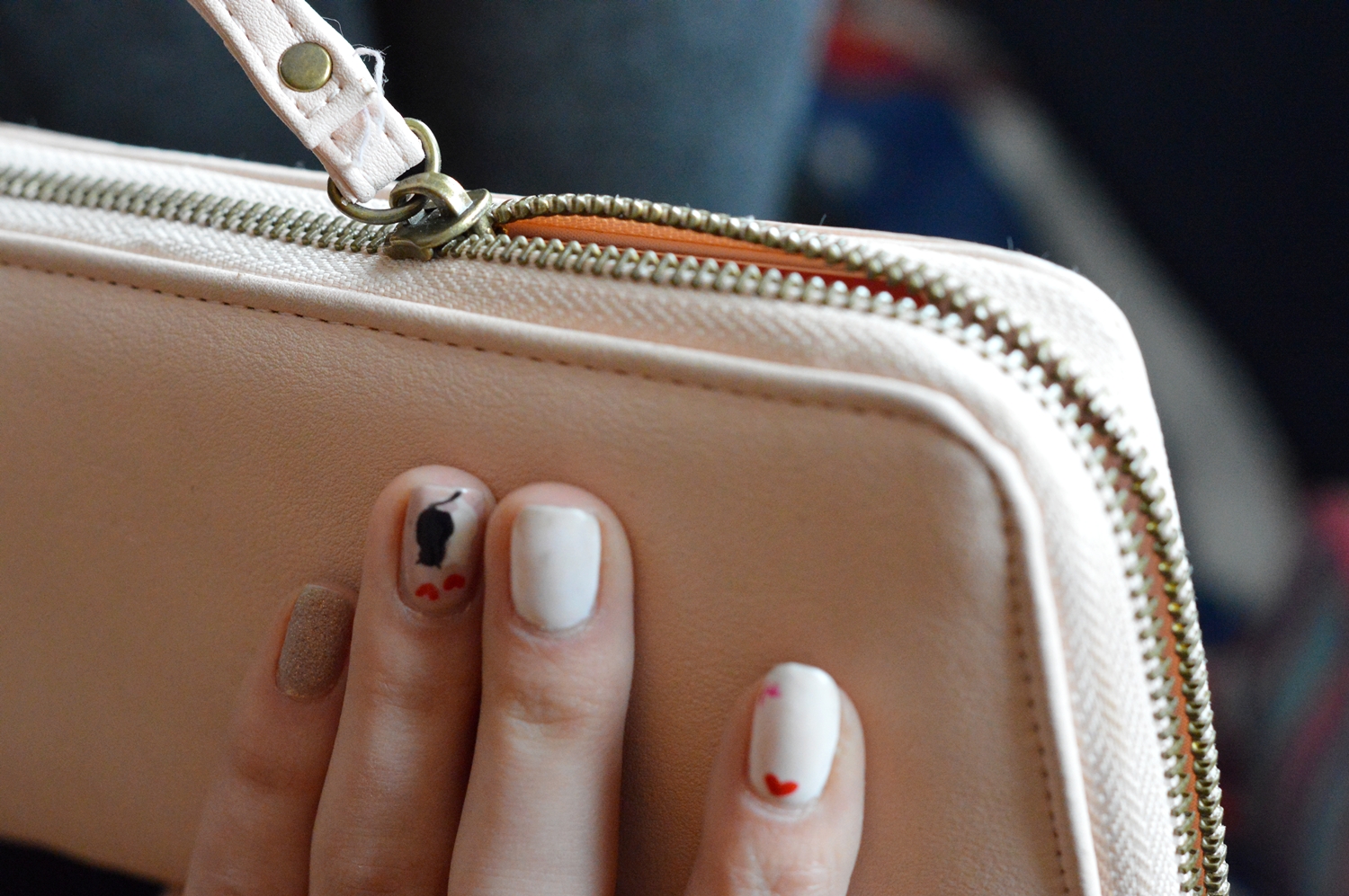 Pierwsze skrzypce grają tutaj kotki - zakochana para ze splecionymi ogonkami. Biała kotka i czarny kocur skradły moje serce dlatego przeniosłam je na paznokcie mojej przyjaciółki. To idealna opcja na walentynki, tak naprawdę nie tylko dla zakochanych :-)!
