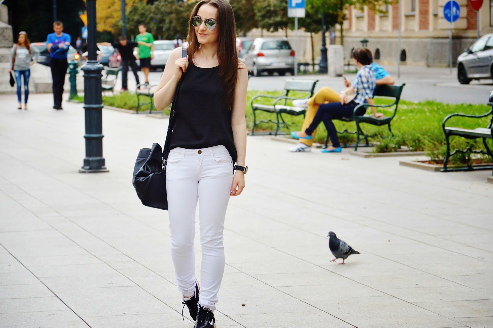 Pants- New Yorker/ Blouse- Stradivarius/ Bag- Parfois/ Watch- Born Pretty/ Shoes- Nike