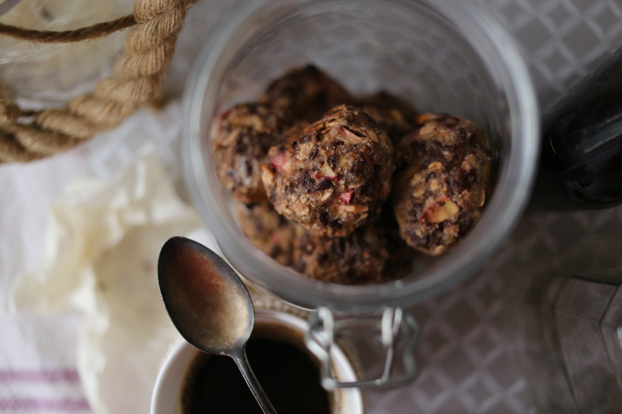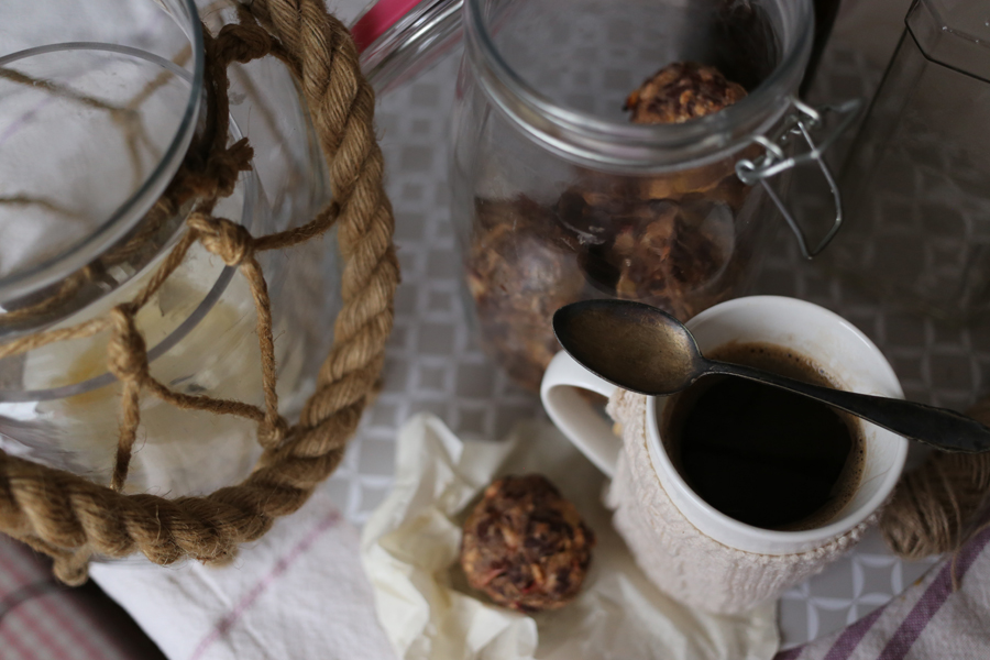 Kontynuując mój temat słodkości idealnych do kawy dziś mam dla Was pomysł na wilgotne kulki. Robi się je dosłownie chwilę, składniki mieszamy w dużej misce i gotowe. W przepisie nie wykorzystałam jajka tak więc zwolennicy jedzenia wegańskiego śmiało mogą wykorzystać przepis. Zawsze moim największym problemem było chodzenie po domu w poszukiwaniu czegoś słodkiego. Potrafiłam dziesięć razy zajrzeć do tej samej szafki żeby sprawdzić, czy aby na pewno coś pysznego nie umknęło mojej uwadze. Dlatego teraz zagospodarowałam sobie słoik, w którym w razie potrzeby czekają ciasteczka, kulki albo inne wypieki własnej roboty. Polecam ten sposób :)