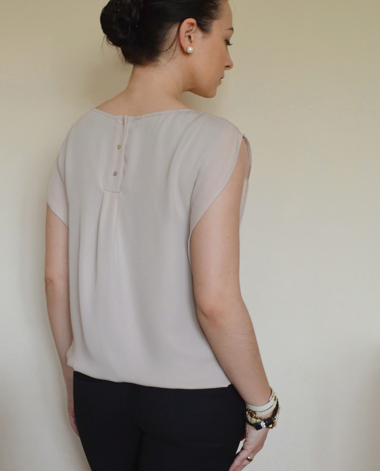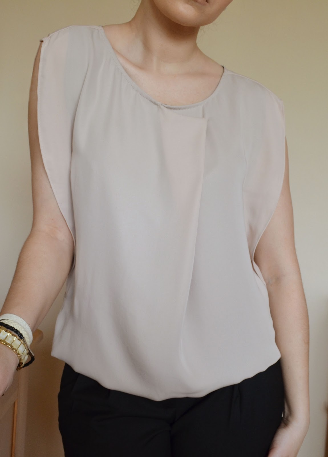Dziś chciałam Wam zaprezentować połączenie moich dwóch ulubionych barw. Delikatna bluzka w stylu 'butterfly' to mój najnowszy zakup. Dziś doczekała się swojej premiery. Żeby podkreślić jej subtelność i zwiewność, a nie stworzyć zbyt monotonnego outfitu, zestawiłam ją z czarnymi spodniami o długości 7/8. Długo szukałam spodni, które nie byłyby harem'ami ani klasycznymi cygaretkami. W Reserved udało mi się znaleść model mający po trochu z oby dwóch fasonów. Są bardzo wygodne i uszyte z porządnego materiału. Całość uzupełniają dodatki w czarno-kremowym kolorze.