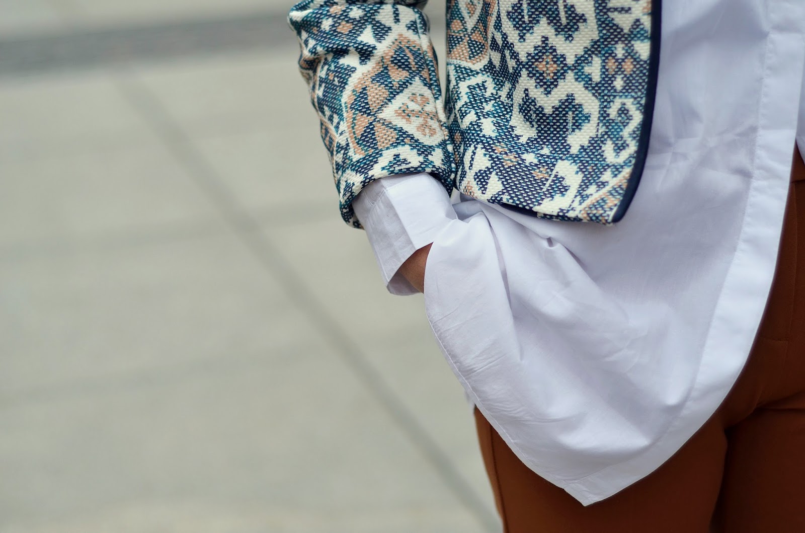 To też moja propozycja ma dwa oblicza ;) Pierwsze - w płaszczu, z szalem i botkami a wszystko w jednej tonacji, tylko gdzieniegdzie przebija się zień. Drugie - to co pod płaszczem: nieśmiertelna biała bluzka, kolorowy żakiet i spodnie w cudownym, karmelowym kolorze.