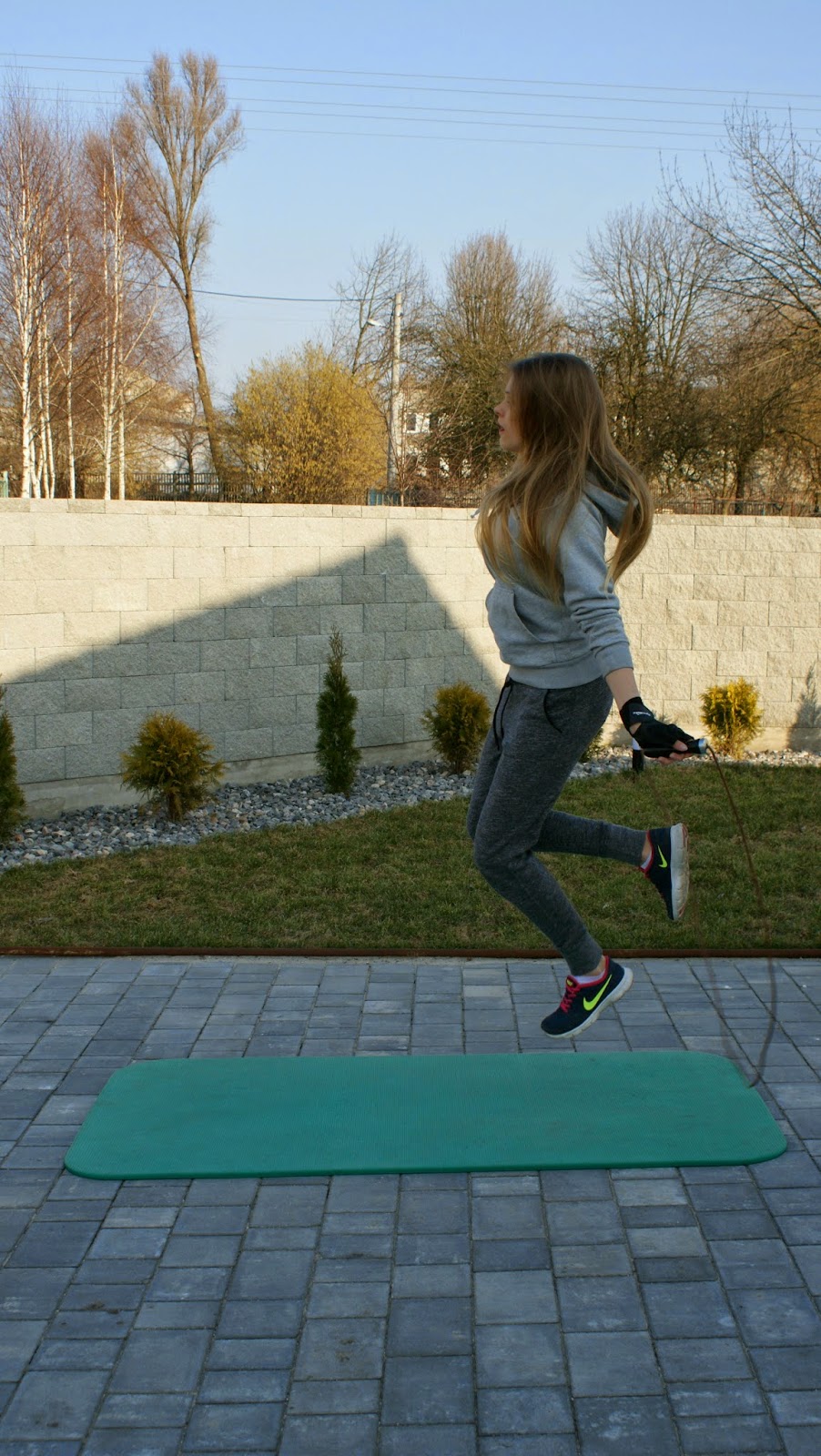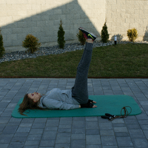 Skakanka (1min x 5) w między czasie kładziemy się i wyciągamy się z całych sił...
