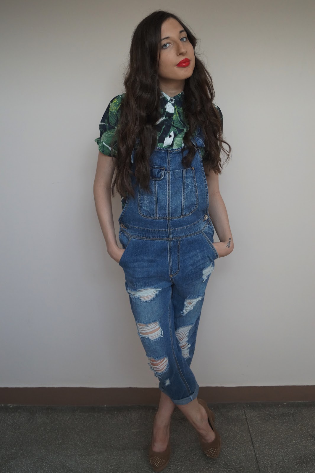 - Stylizacja pierwsza - koszula i ogrodniczki - Stradivarius , buty - Centro.