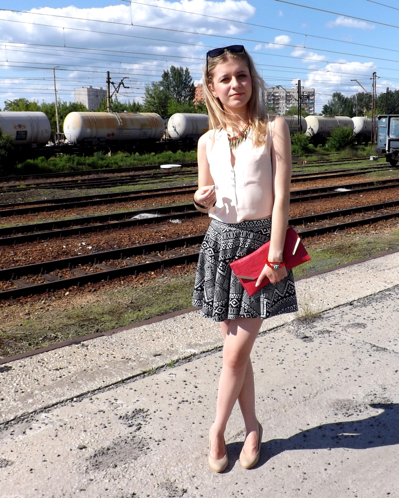 Blouse: H&M; Skirt: areyoufashion.com; Shoes: Czasnabuty.pl; Bracelet: Parfois, CZAKI;