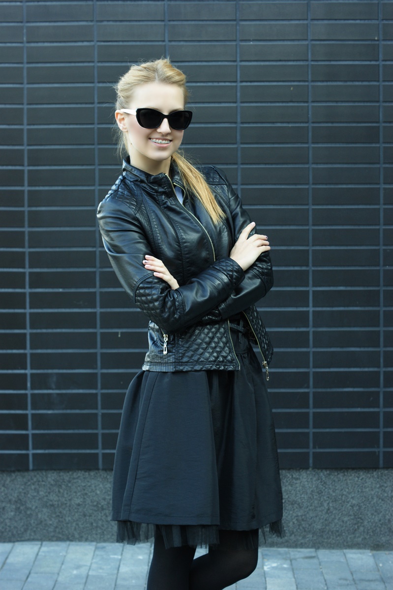 Kurtka/ Jacket - No name, Koszulka/ T-shirt - CROWN/ CupSell.pl, Spódnica/ Skirt - Paris Kate & I, Kopertówka/ Clutch - Maxada, Baleriny/ Ballerinas - Pantofelek24, Paznokcie/ Nails - Podgórska Nails Forever