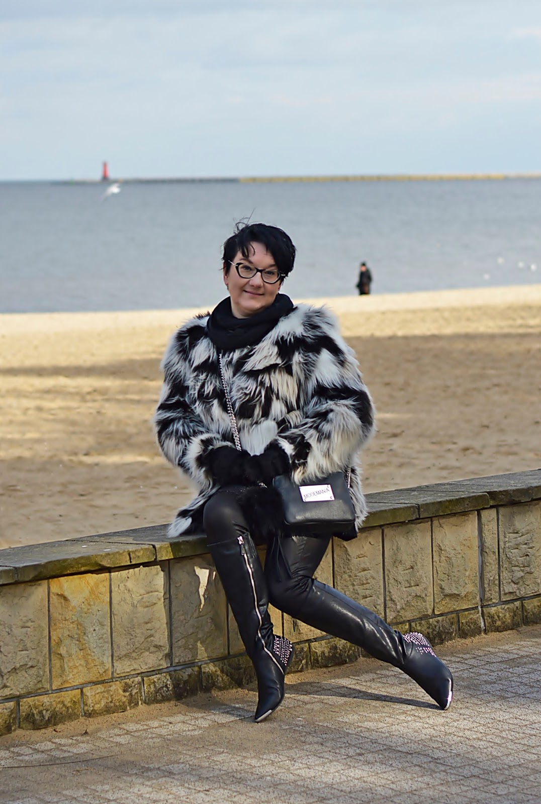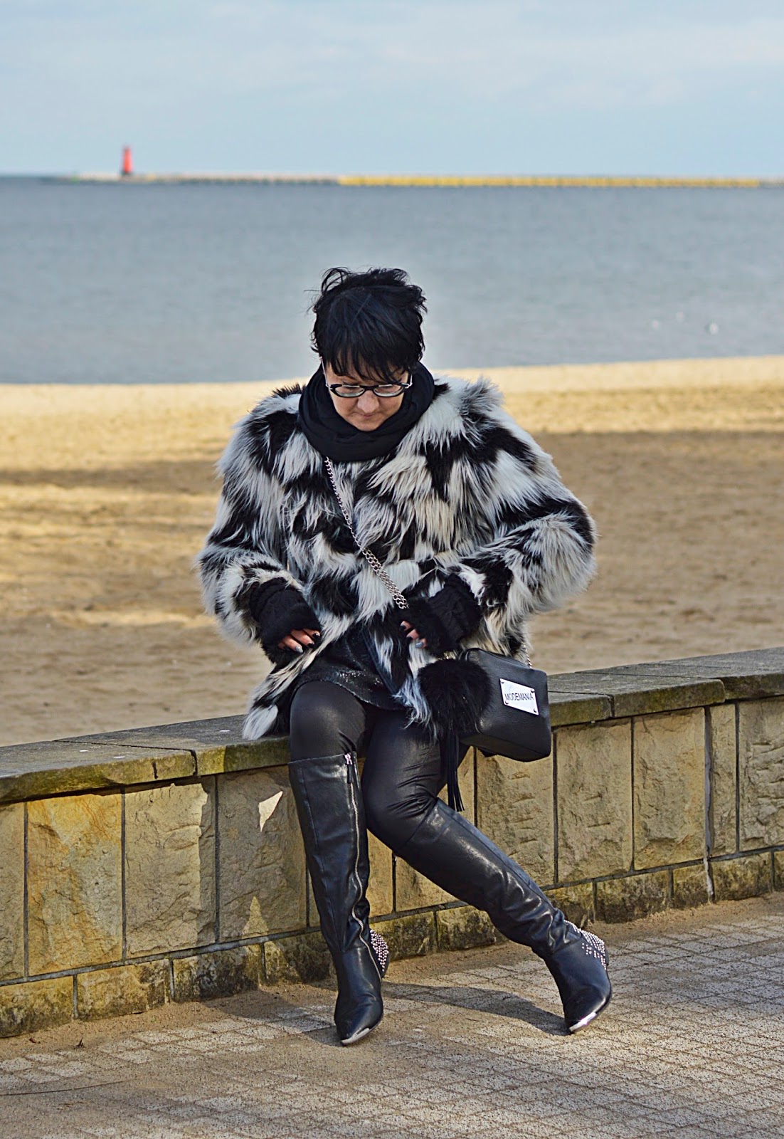 Jak to u mnie, reszta spokojna czarna. Kozaki wyciągnęłam z dna szafy. Kupiłam je chyba dwa sezony temu i tyleż razy miałam na nogach. To dlatego, że ostatnio wolałam złote okucia w torebkach. Odkąd mam oprawki ze srebrnymi dodatkami, wybieram ten kolor do reszty. Mówi się, że złoty i srebrny to kolory neutralne i można je łączyć ale je nie lubię.